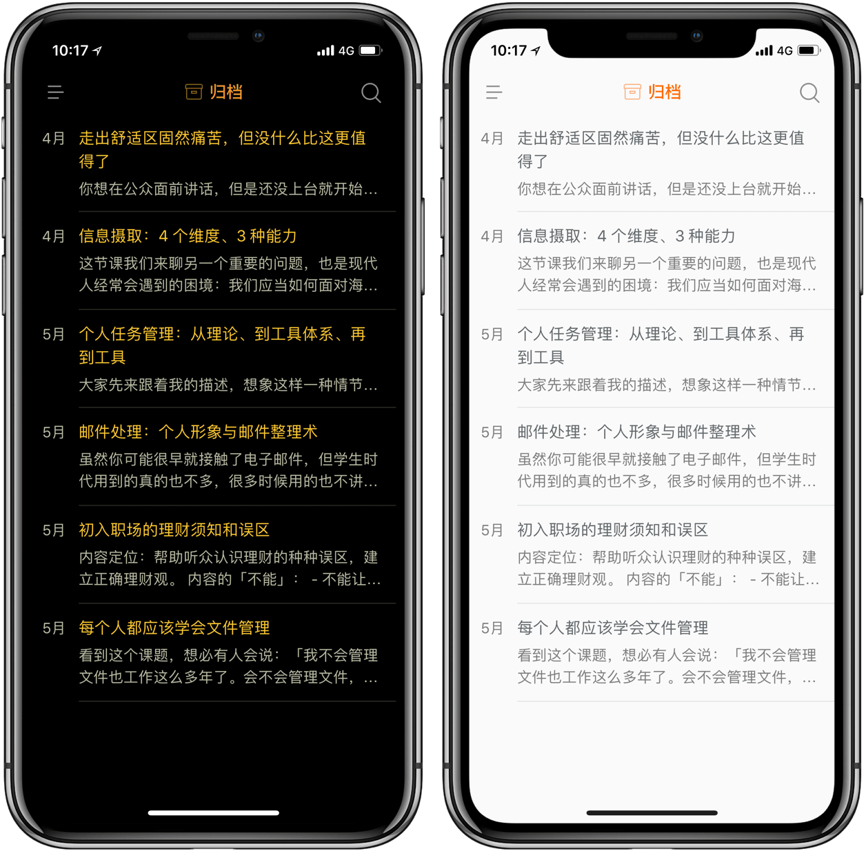 新增 Dieci 与 Ayu 两个新主题,两个主题一亮一黑,特别值得说的是这个黑色主题 Dieci,Bear 官博称它是专门为 iPhone X 制作,黑得一体通透,非常值得一试: