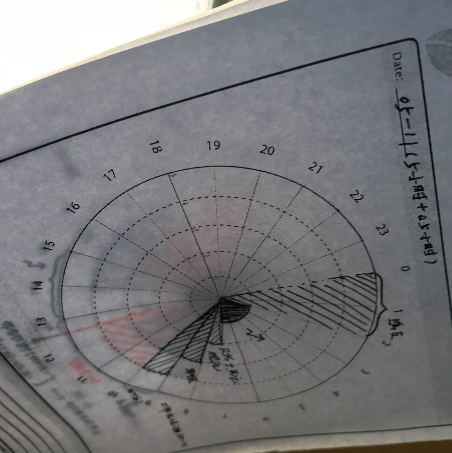 我的精力数据是用纸笔记录的,这样不仅记起来趁手,每周复盘的时候也有妙用。你看: