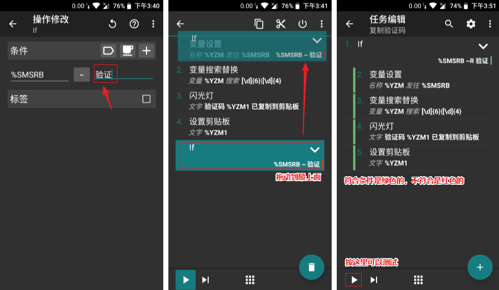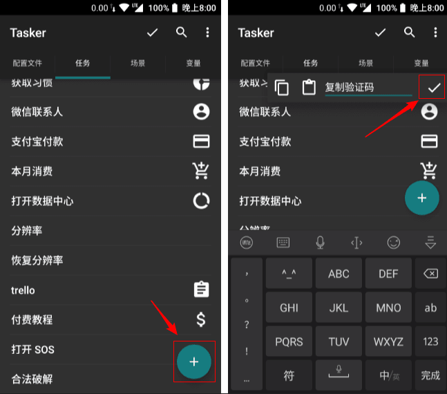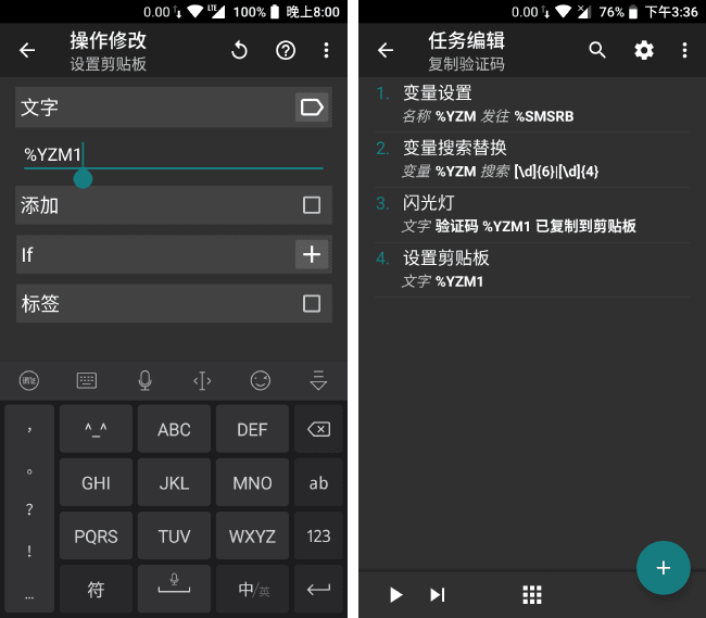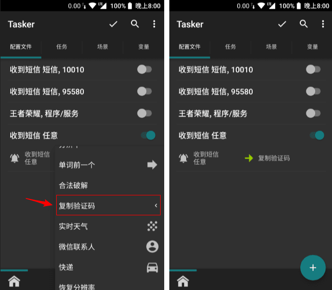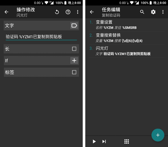 到这里第一步就已经完成了,每次我们的手机收到短信的时候都会触发「复制验证码」这个任务啦。