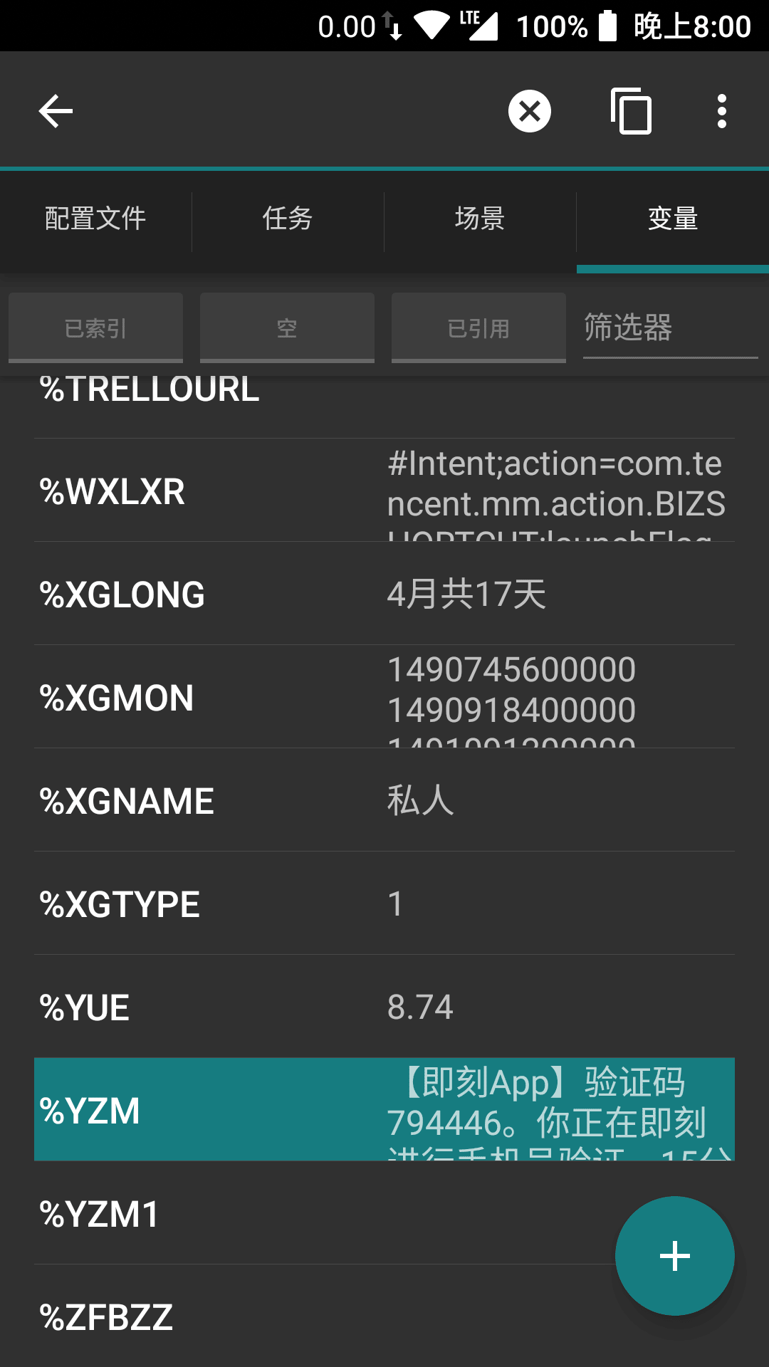 Tasker 设置里面关闭初学者模式后,我们就可以在变量界面看到所有我们自定义变量的值啦。