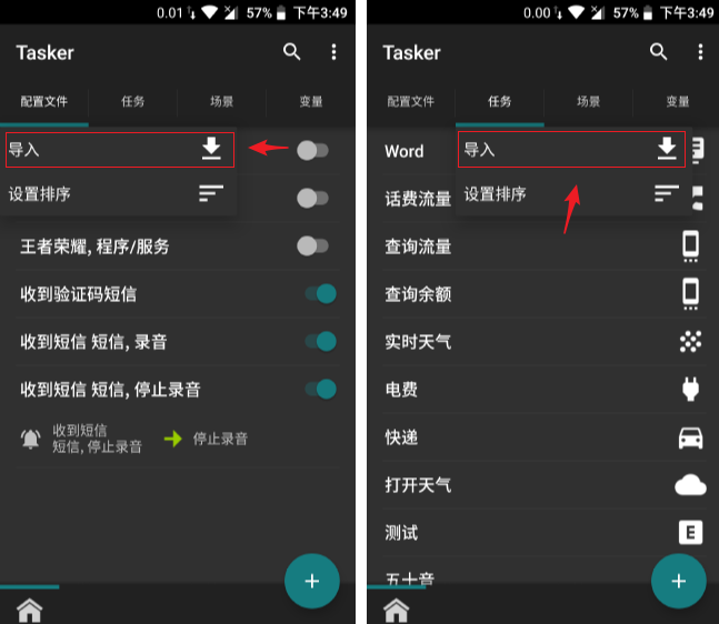 接下来就教大家下载好配置文件和任务之后如何导入到 Tasker。