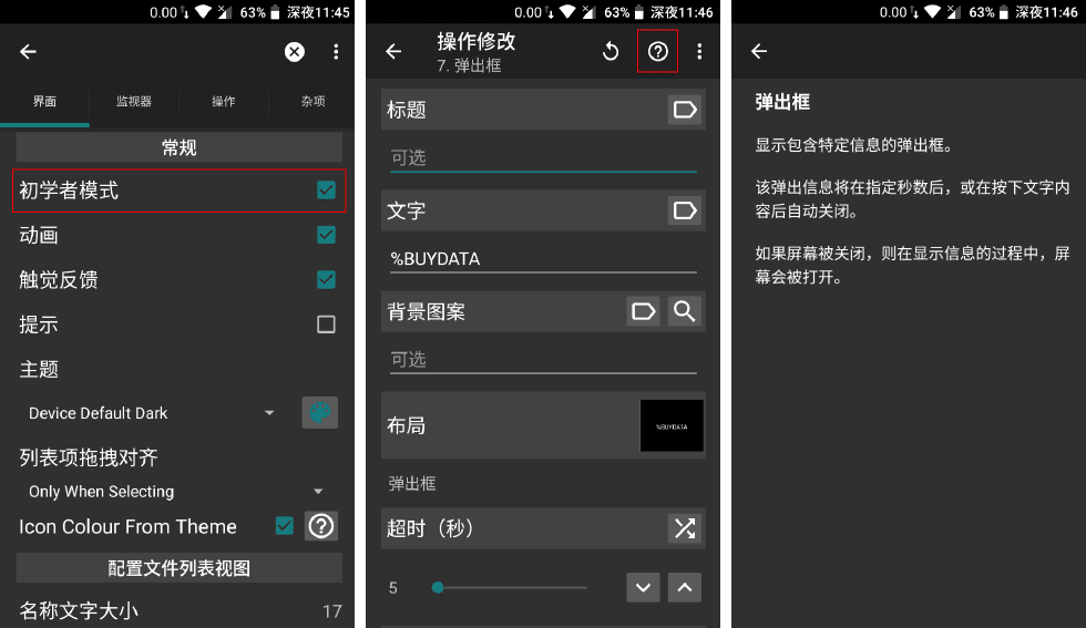 说到这里,有的派友可能会开始担心,这么复杂操作是不是需要付出很大的精力和学习成本?这就要说一下 Tasker 另一个值得称赞的地方 —— 平滑过渡的用户梯度了。初次打开 Tasker ,设置里面的「初学者模式」默认是开启状态,新上手的用户不会看到密密麻麻的配置和变量文件。
