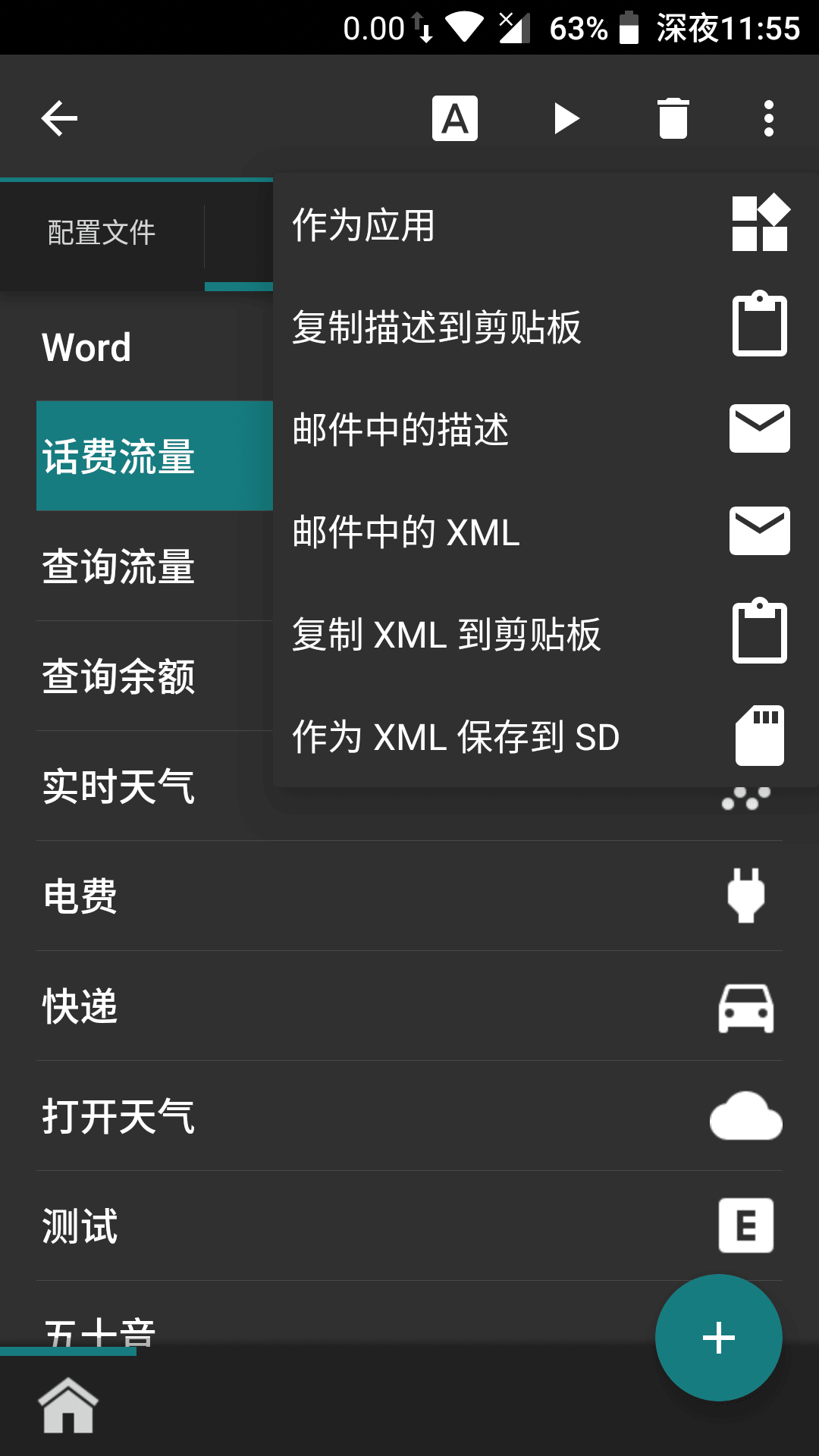在你想要备份的任务/配置/场景上长按之后可以选择单独导出这个任务/配置,而点按不同的标签栏可以单独导入不同类型的备份文件。以我们上面的复制验证码为例: