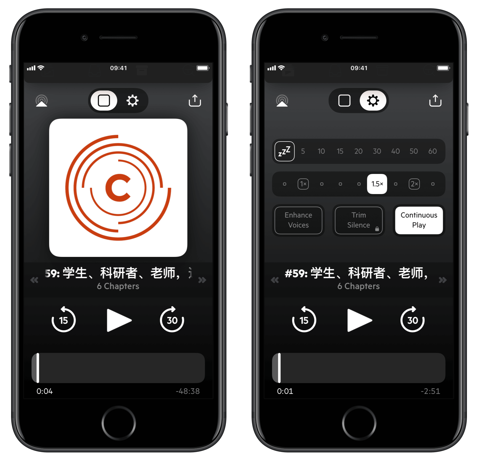 对于老用户,Castro 也准备了一份回礼——人声增强和黑夜模式可以永久免费使用。官方的解释是,老用户在买断制时代就为这些功能掏过钱,以后也就不需要再次付费。我很欣赏这种向老用户开放部分付费功能的做法,它比单纯打折让人觉得更舒服,毕竟我们往往是冲着应用的某些功能去的,再贵也不得不买;而能够免费使用一些高级功能,用户在决定订阅前就有个缓冲期,不至于马上掉头走人。