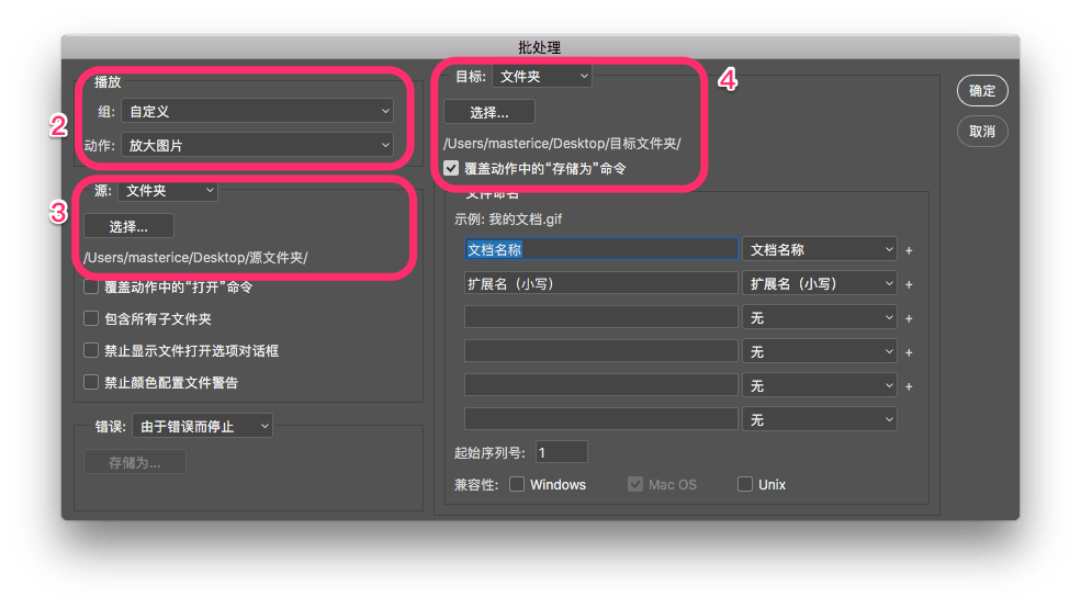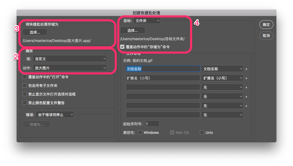 Photoshop 是一个跨平台工具,你在Windows 或 macOS 上制作的快捷批处理都可以用在另一个平台上,不过要做一些修改来避免兼容性问题: