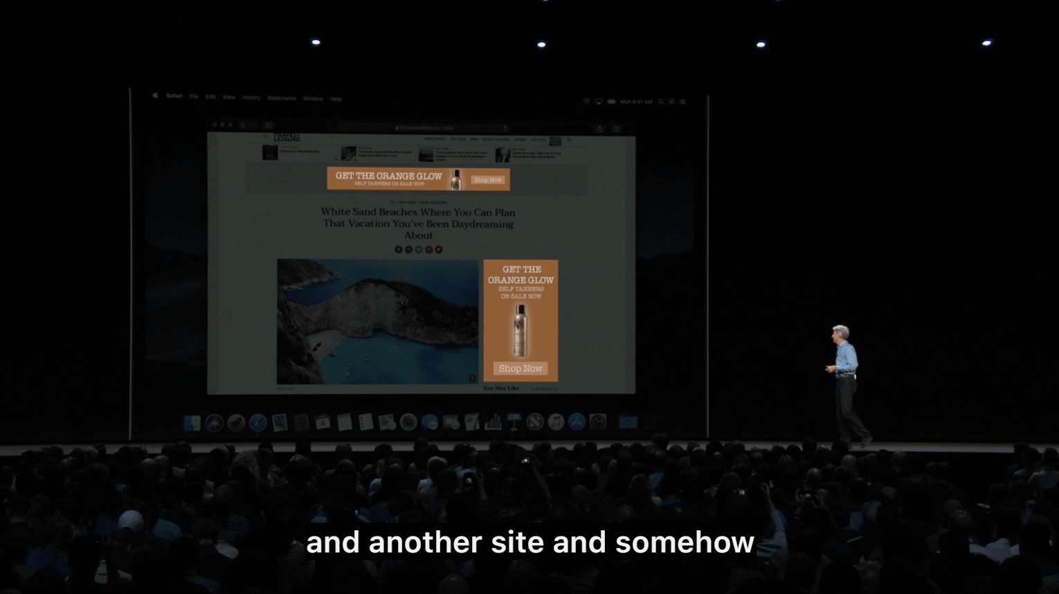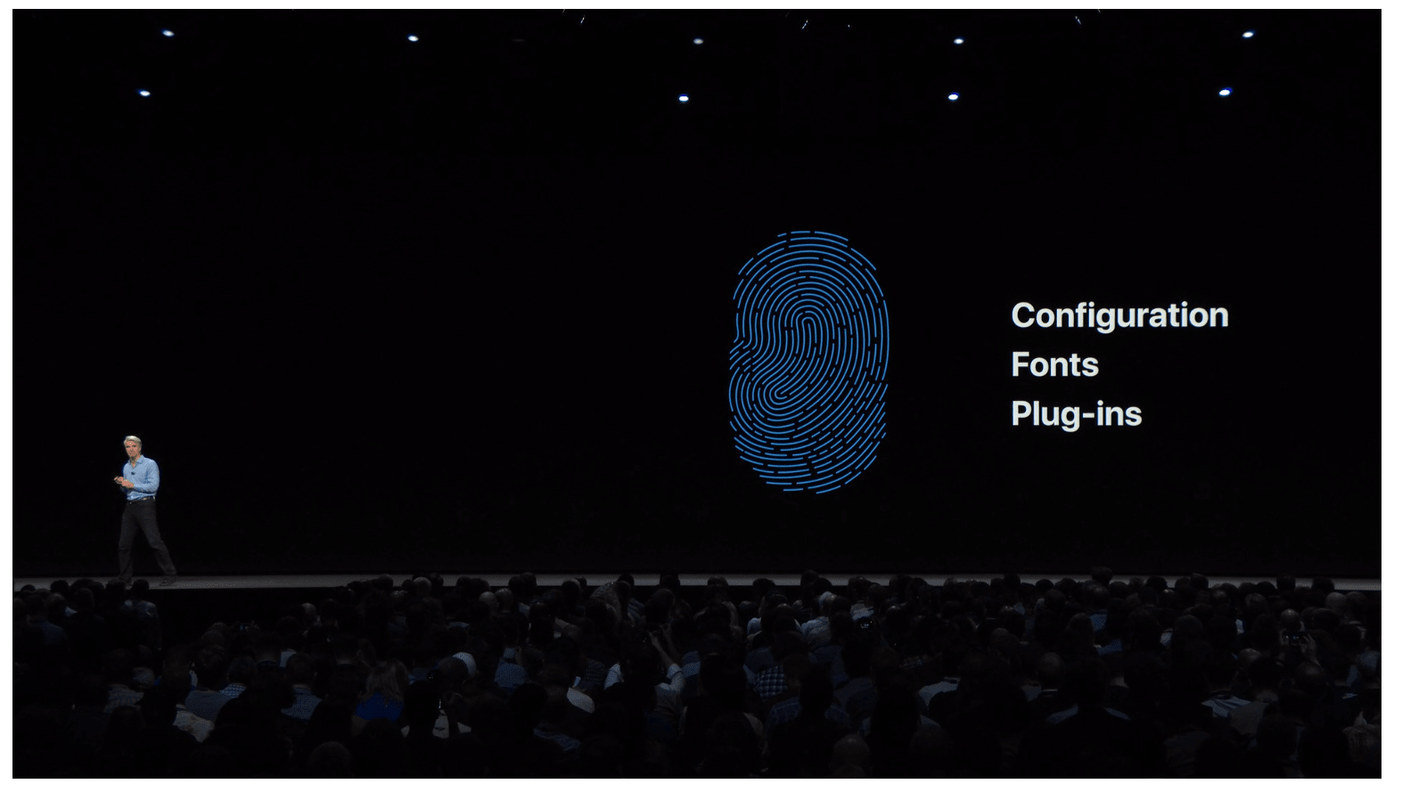 Hum:在 WWDC 2018 中,Craig Federighi 在谈到新版 Safari 在隐私方面带来的提升时,这张指纹的图片让我印象很深:
