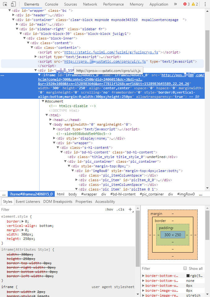我们平时所看到的网页广告大部分都是通过 iframe 的方式加载的,也就是一个网页里面加载另一个网页,我们看的广告实际上就是另外的完整网页。