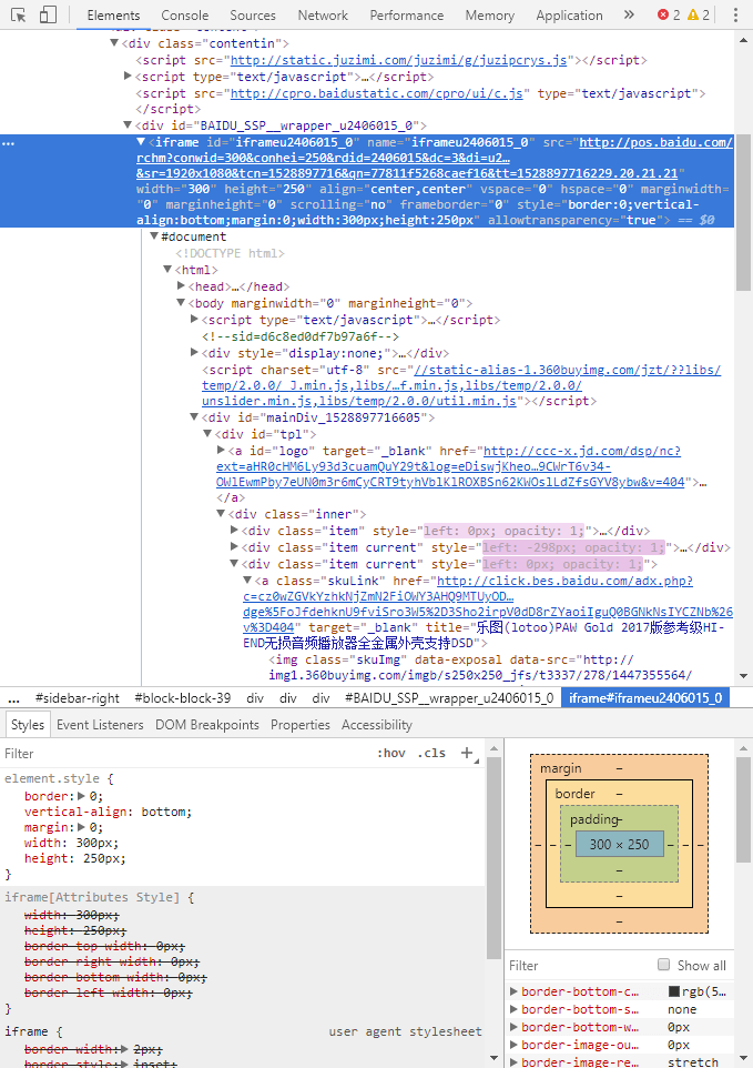 过了几天我上网拿的时候打开了句子迷,它用了百度广告联盟的广告。打开网页同时通过 iframe 请求广告服务器加载广告。