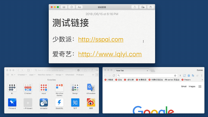 普通链接(少数派)用 Safari 打开,特殊链接(爱奇艺)用 Chrome 打开