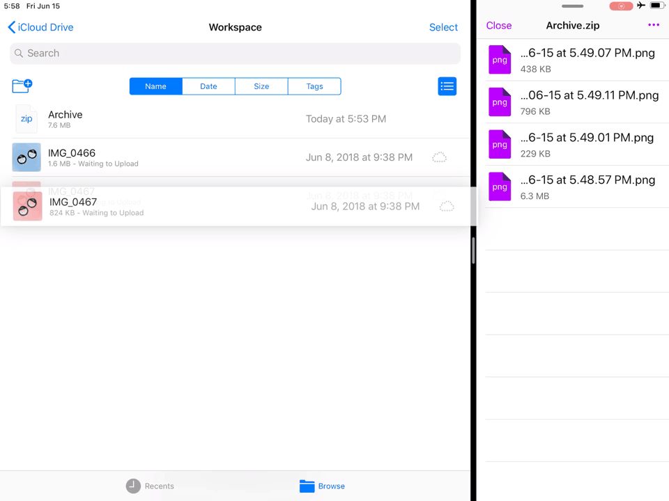当然也有不少文件管理工具自带了解压功能,但是像 Documents 这样的工具都需要我们把压缩包先拷贝到,不能「原地解压」,总觉得在挂靴瘙痒。在 iOS 11 引入 Files 之后,我就更难以接受交互方式不统一的第三方文件管理器了。
