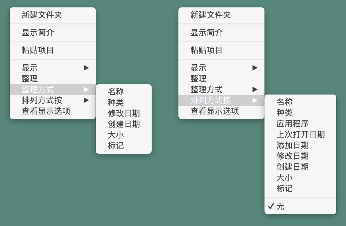 这可能是很多 Mac 新手都会遇到的问题:Finder 文件夹中的图标视图(⌘Command–1)是我们最熟悉的文件视图之一,它以图标(Icon)的形式显示文件,方便预览文件内容。可是当你想要对它们进行整理时,会发现右键菜单中有「排列方式」和「整理方式」两个选项,它们的区别到底是什么?