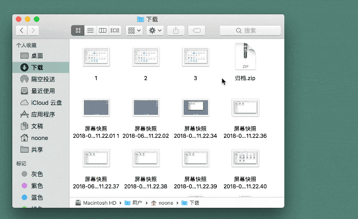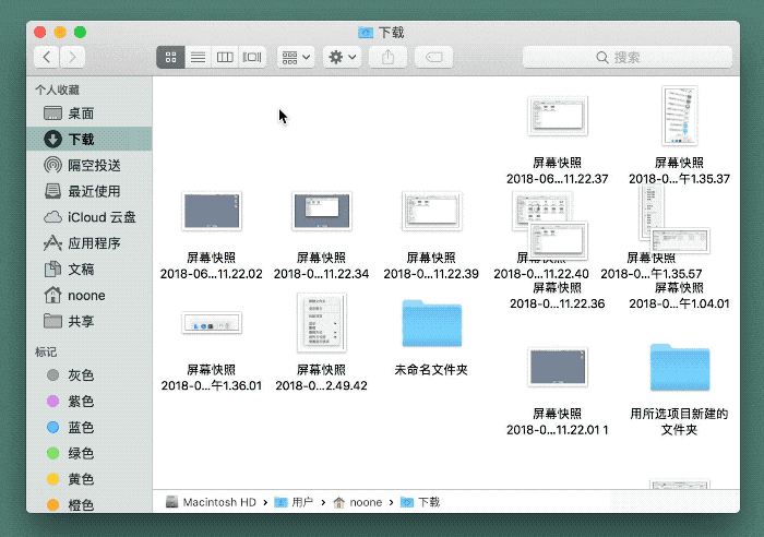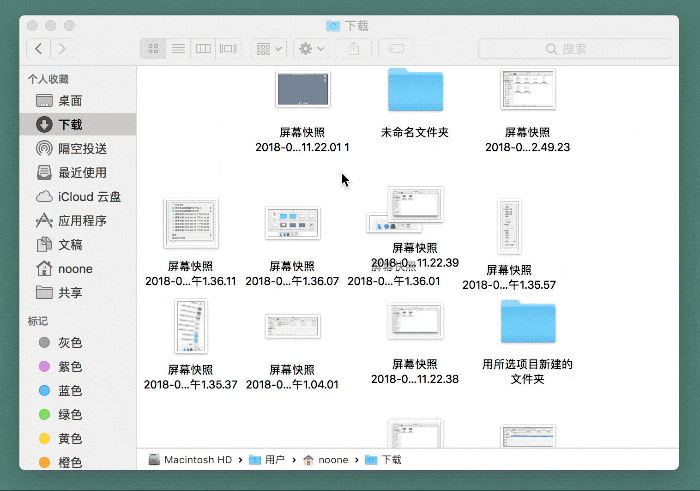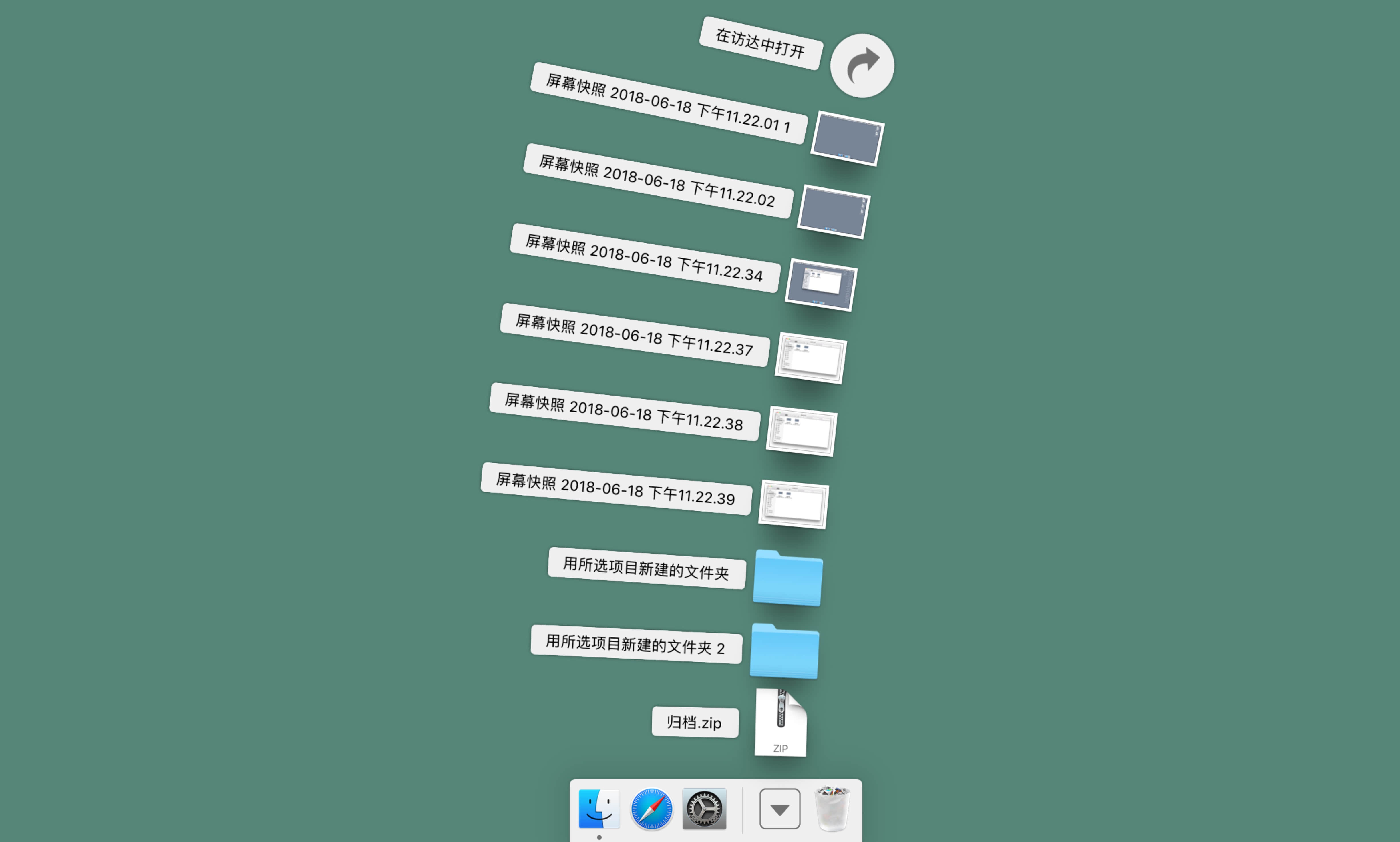 我比较常用的是网格视图,因为我把屏幕截图的存放位置修改到了一个文件夹里(需通过终端命令,默认存放的位置是桌面),然后再把这个文件夹放到 Dock 上。网络视图的好处就是可以直接从 Dock 上将这些截图直接拖拽到微信、Slack、微博、Twitter 等社交网络里,以及预览截图内容。