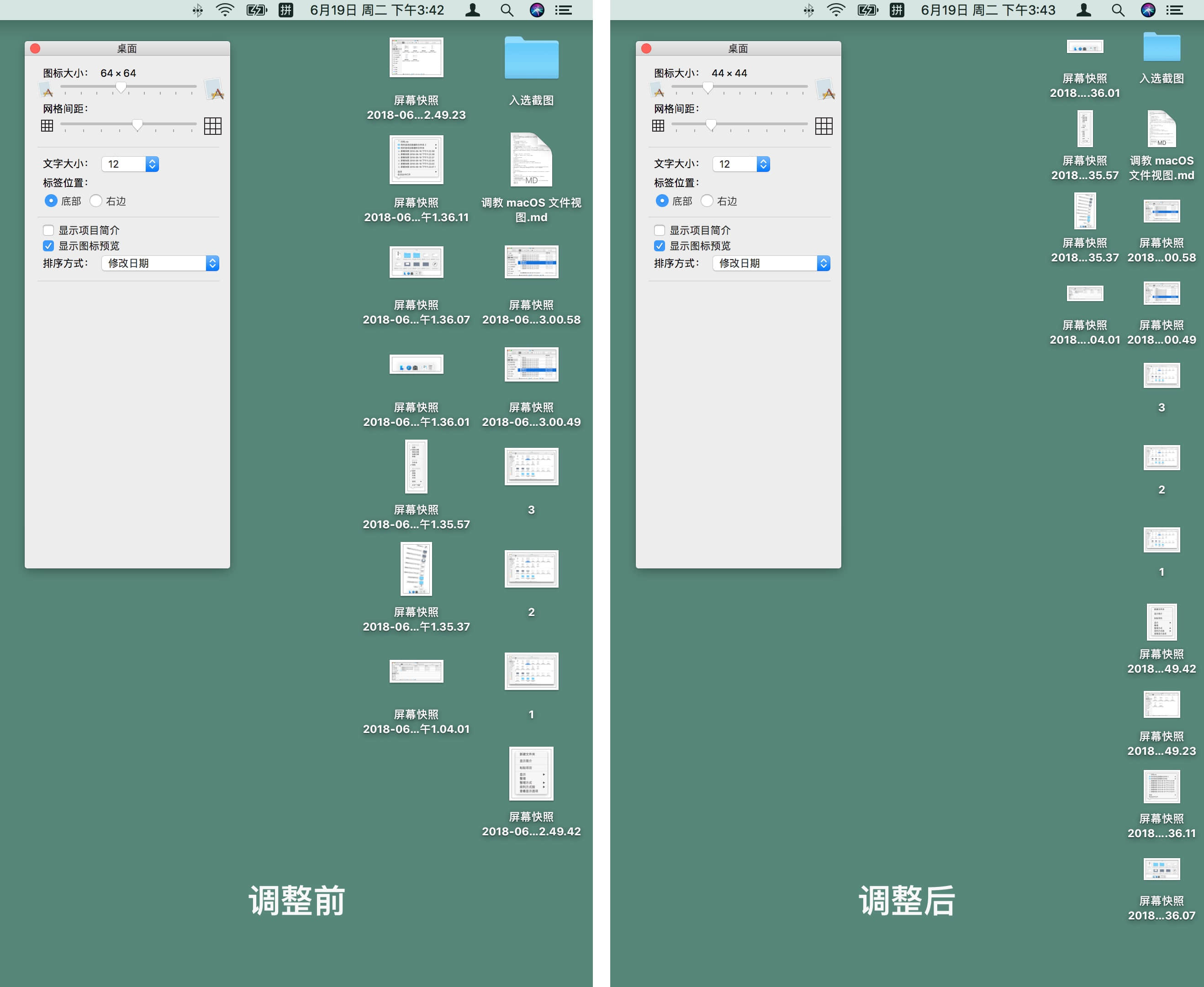 而「添加日期」,就会让这些顺序相对固定:当我下载了一个新文件时,可以保证它一定在「下载」文件夹的顶部;当我修改了「桌面」上的一个文件时,可以保证它还在刚才的位置。