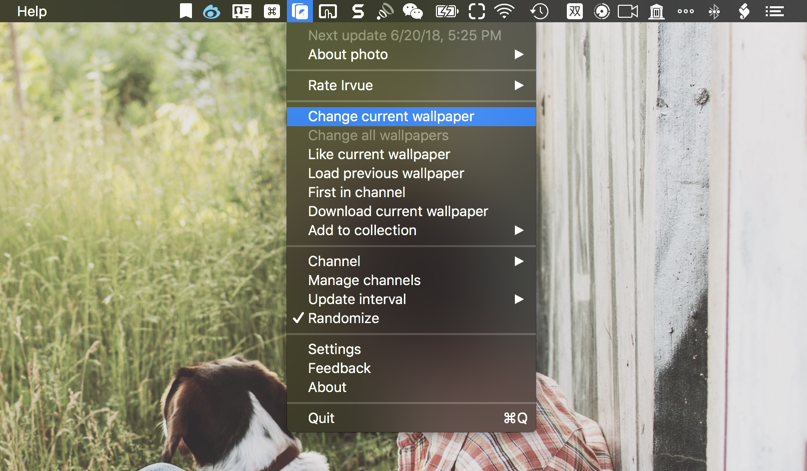举一个例子你就能理解,我有一个壁纸应用叫 Irvue,你可以通过它的菜单项「Change current wallpaper」来切换壁纸: