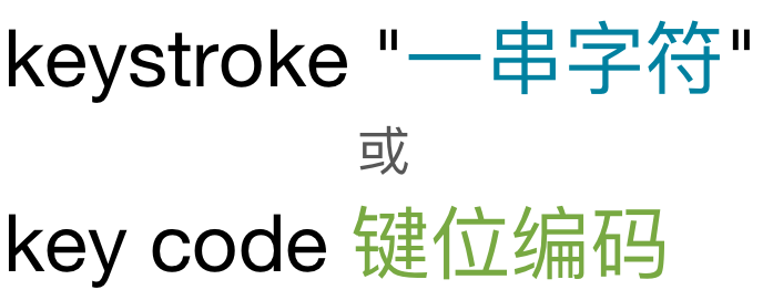 keystroke: 主要用于输入一串任意字符,非 ASCII 字符也可以。