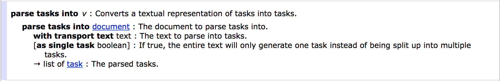 于是我最终了解到 OmniFocus 快速添加任务类是 parse tasks into,在词典里搜索一下: