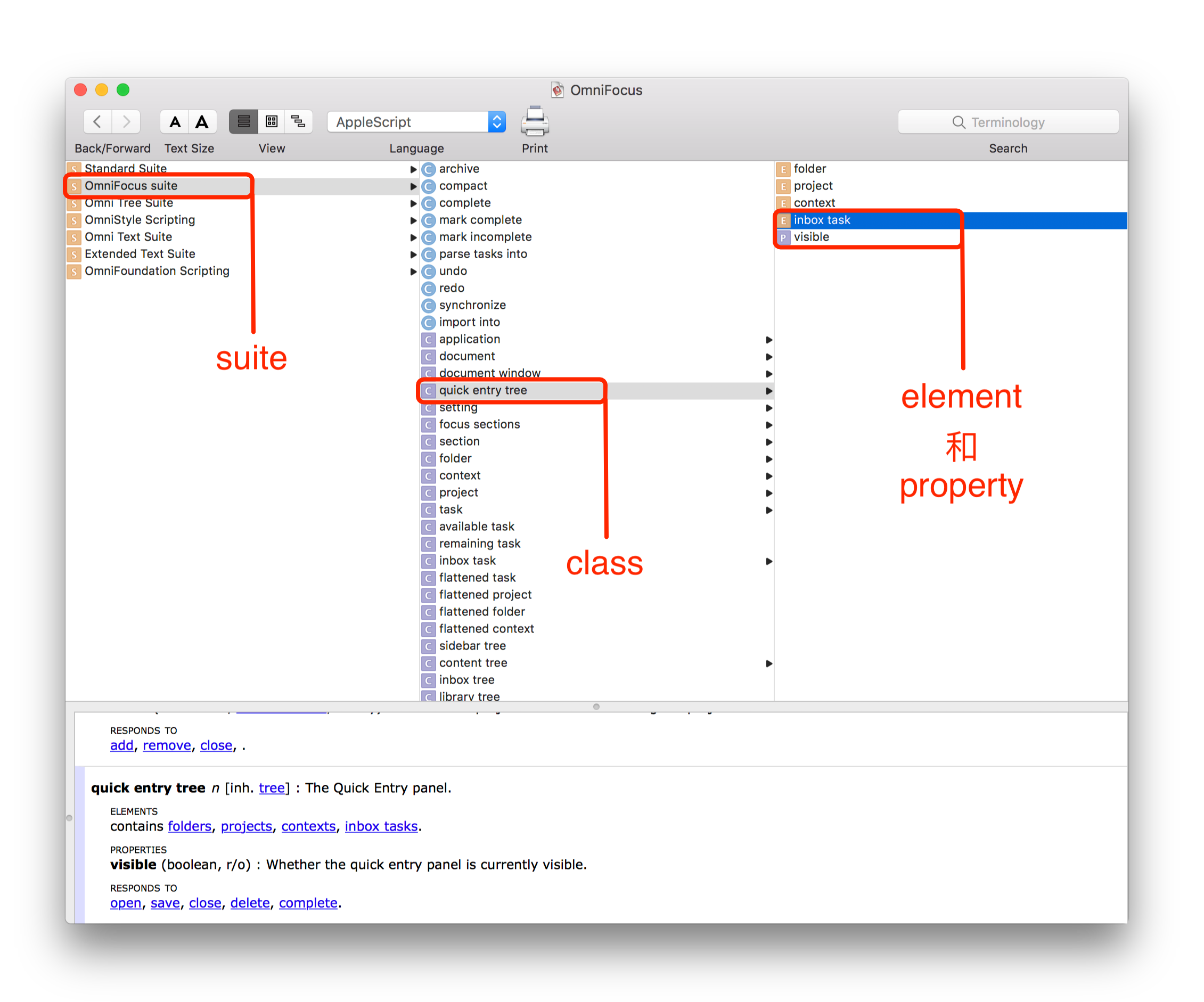 AppleScript Suite3 ,就是 AppleScript 类(class),及其元素(element)和属性(property)的集合。