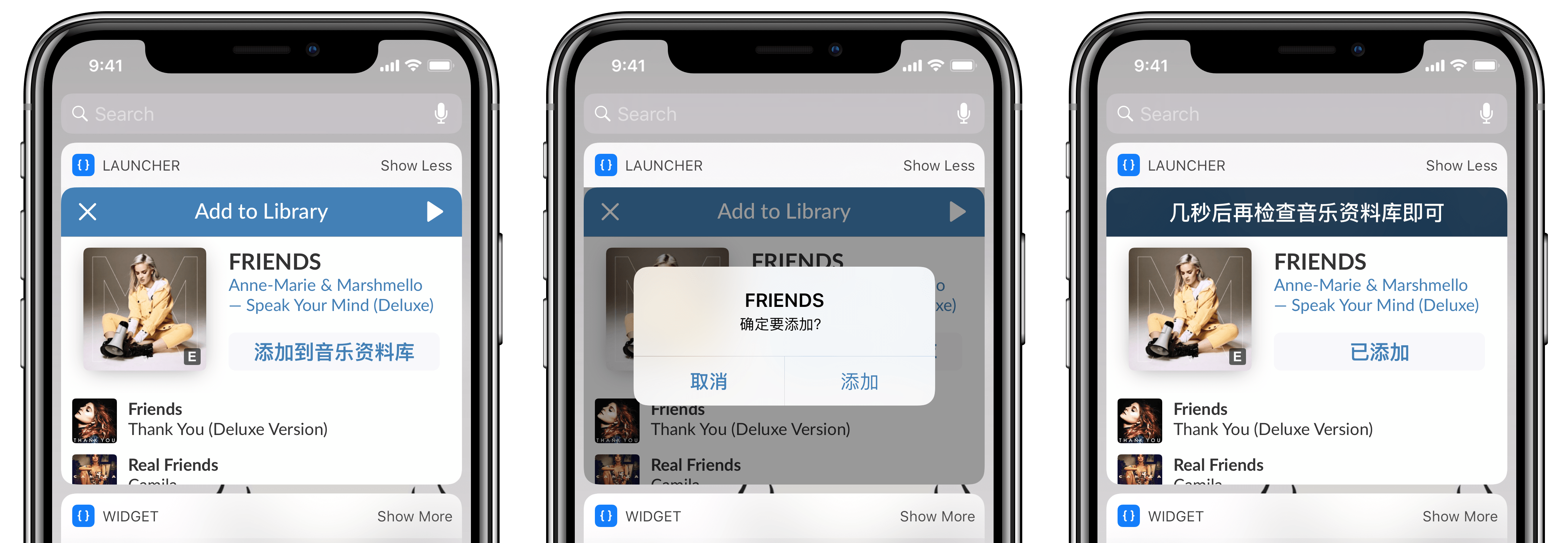 我在 Apple Music 听到喜欢的音乐的时候都会把它离线到本地资料库。正常情况下我应该打开「Music」App 浏览歌曲再添加,而使用脚本只需要在小部件运行就能直接添加,并且更进一步地我可以让它显示相似的离线歌曲,省得我去检查是否已经下载了同一首不同版本的歌。