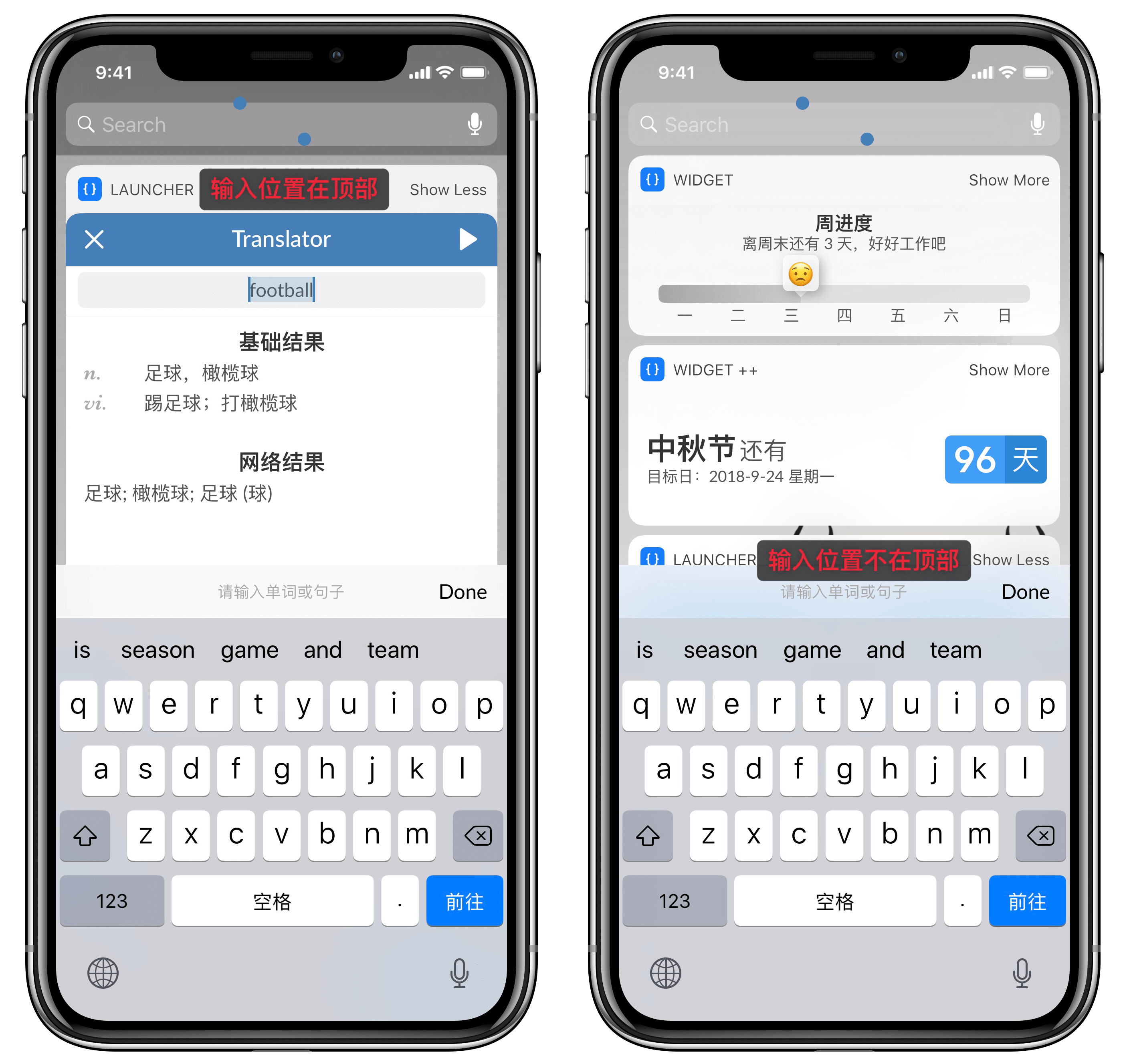 在 iOS 11 上讨论小部件的使用效率似乎有点可笑,但是它比起任何文字输入都需要依靠复制完成而言,小部件唤起键盘输入提供给使用效率的可能性要大得多。它不仅可以完成一次性输入操作,在输入完成后自动收回键盘,还可以输入大量文本内容,甚至自由切换输入键盘、换行等。