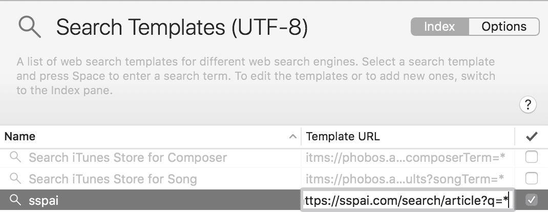 这个简单的例子中,我只是把搜索语法 site:sspai.com (表示在少数派的站点下进行搜索)加在了关键词前面,省得每次自己手动输入。你可能用过一些「站内搜」的浏览器插件,它们其实也是结合了搜索 URL 和搜索语法。
