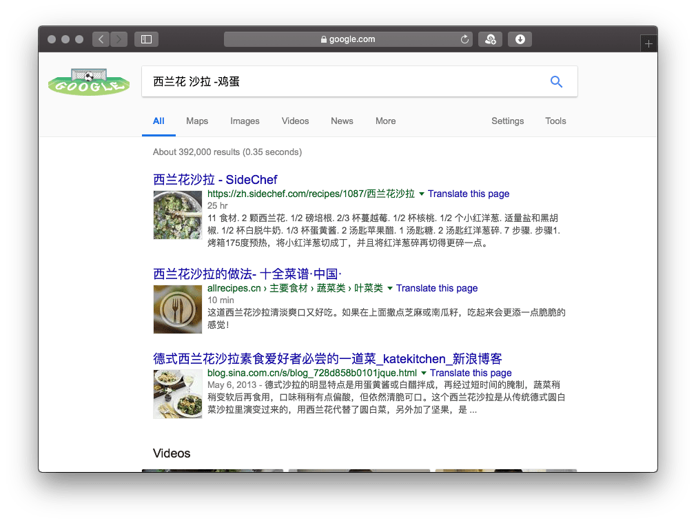 再看第二个例子,我只想查看中文的搜索结果,那么就在 URL 末尾加上 &lr=zh-Hans。