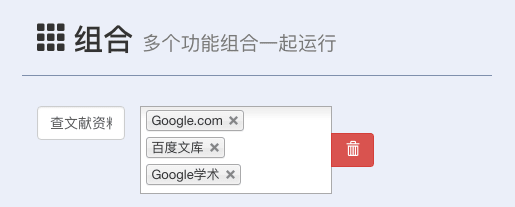 右键搜 是一个高度自定义的 Chrome 搜索扩展,它同样支持自己添加搜索引擎,不过这里我们关注的是它的聚合搜索(组合搜索)功能:一次搜多个网页。 在右键搜设置「页面/划词/图片/链接菜单 - 组合」中,你可以设置多组「组合搜索」,每组能够同时添加多个搜索引擎。添加好后记得在「选择」选项中勾选「组合 - 你设置的组合搜索(图中是『查文献资料』)」