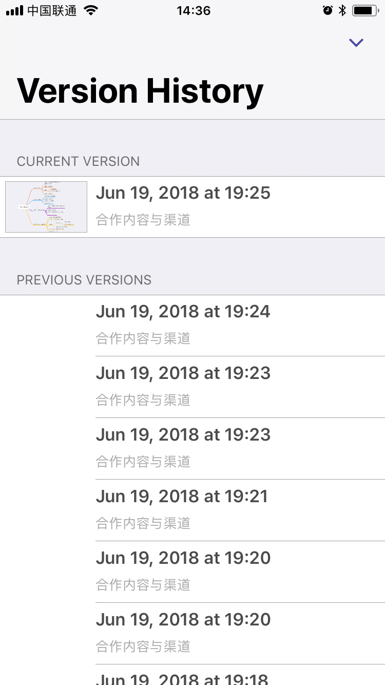 对了,这里再分享一个 MindNode 的 Files 扩展技巧:长按文件,点击「Versions」,可以查看文件的历史版本。自从留意到 Working Copy 能够直接在 Files 上传文件修改记录后,我就一直很关注这些支持 Files 的应用,你也不妨看看它们提供了哪些扩展功能。