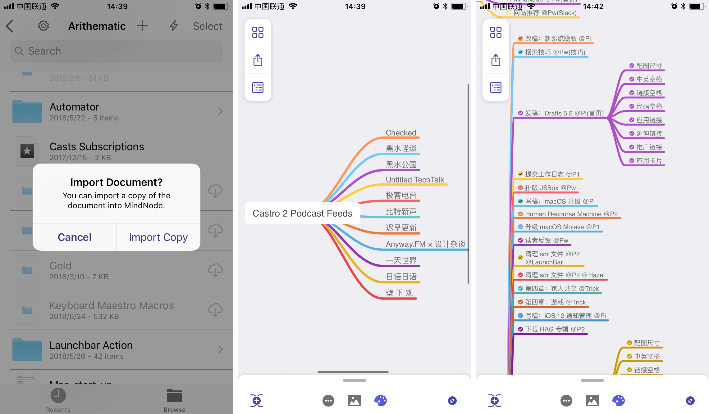 而升级之后,MindNode 的导入支持也更加强大,可以直接在 Files 里导入 OPML、Markdown、taskpaper 和 txt 等支持的格式(可惜现在还不支持 OmniOutliner 格式),即刻生成思维导图。