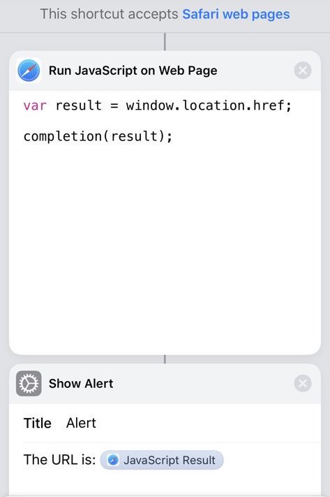 虽然目前还不知道 Siri Shortcuts 增加了哪些其他的 JavaScript 相关变量,但单凭借在网页运行 JavaScript 这一个新步骤,就足以拓展出非常多的玩法,比如把 bookmarklet(书签小工具)的代码直接移植过去,实现这些功能: