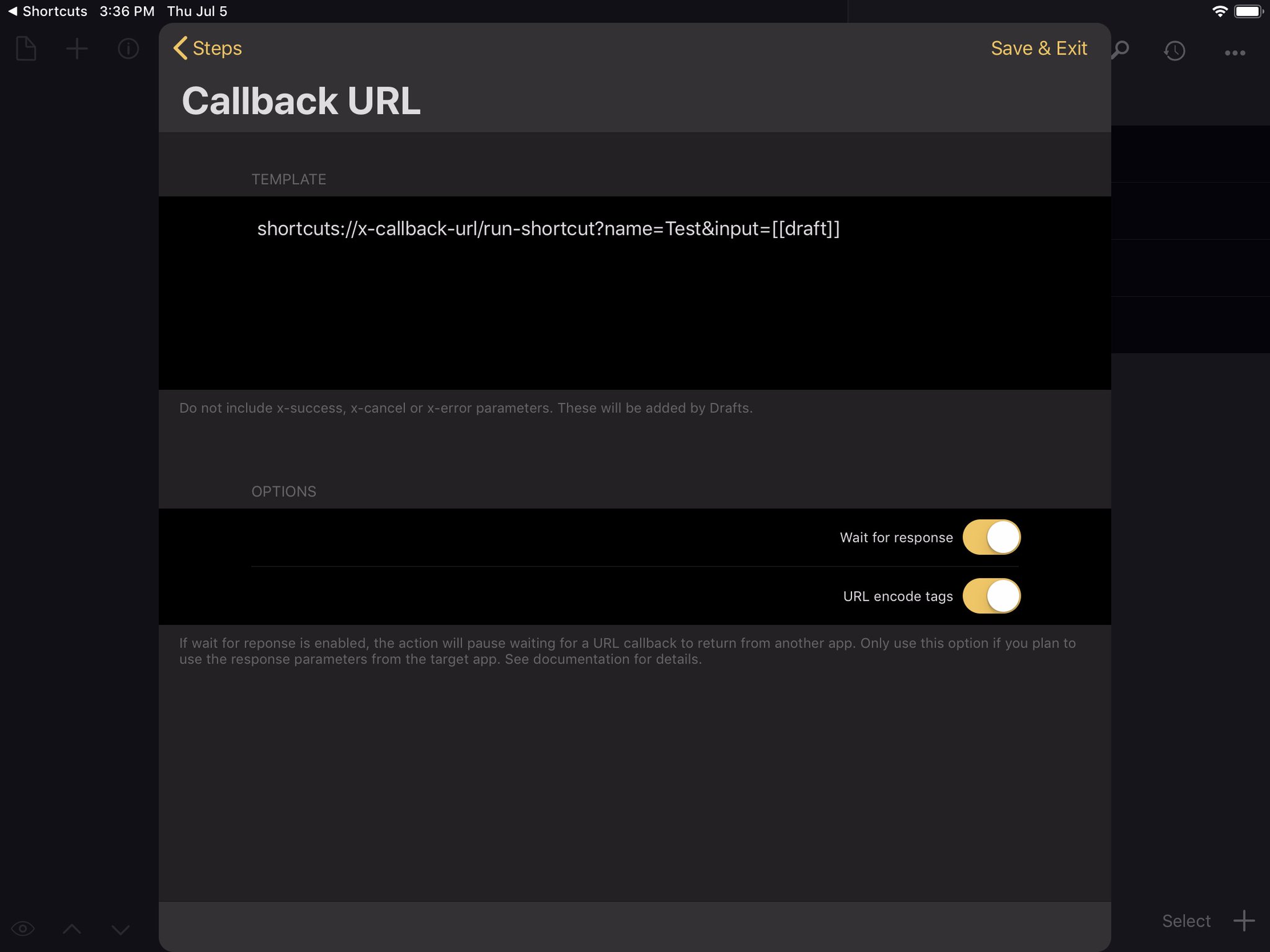 Shortcuts 应用本身也有 URL Schemes,跟 Workflow 那样,可以通过其它 App 来运行 Shortcuts 动作。Launch Center Pro 开发者和 Drafts 开发者已经开始在着手适配了: