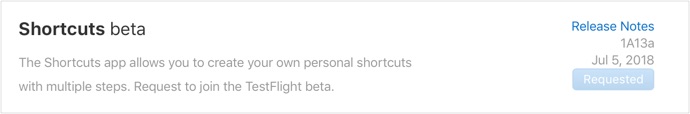 苹果在今天开放了 Shortcuts 应用的 TestFlight 测试资格,如果你想进行申请,需要有一个苹果开发者账号,然后到开发者网站的 下载页面 找到 Shortcuts beta 点击申请,并等待邀请邮件即可。