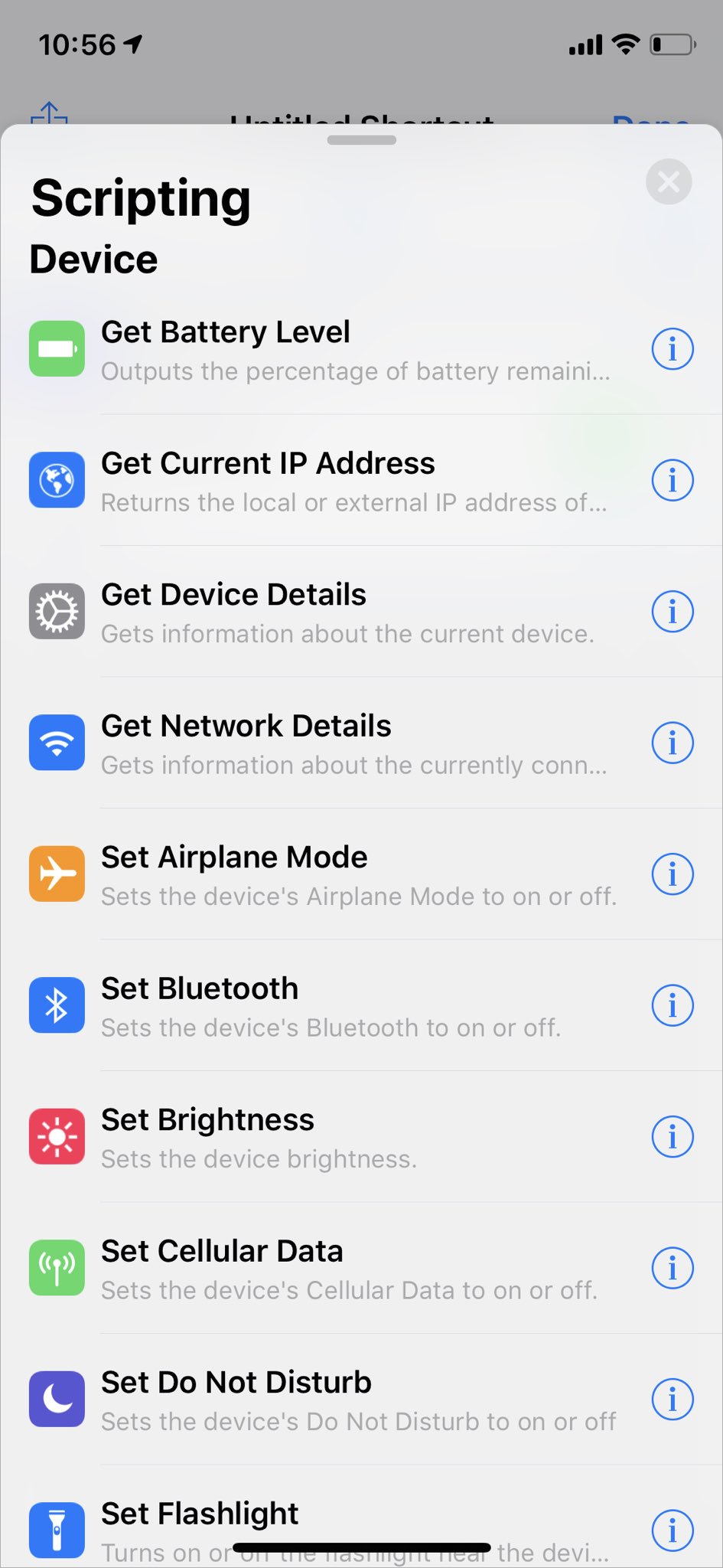 此外,Shortcuts 还能调用电池、IP 地址、设备信息、网络信息、流量等功能。