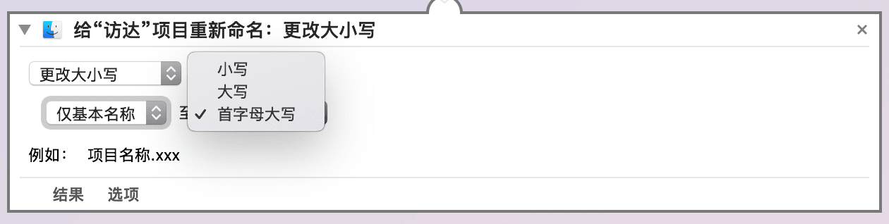 支持改变文件名大小写:可以让文件名中的英文全小写、全大写或者仅首字母大写,我总是用它来命名英文歌曲;