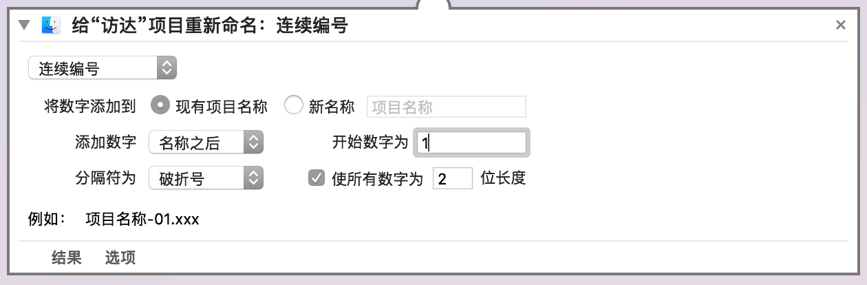 Automator 的「连续编号」功能可以让我们调整编号数字的长度,能够标出 01,02,03 格式的两位数字编号,可以避免应用认错编号。对于经常下载剧集和公开课的读者来说,用 Automator 来重命名这些视频文件比用 Finder 更好。