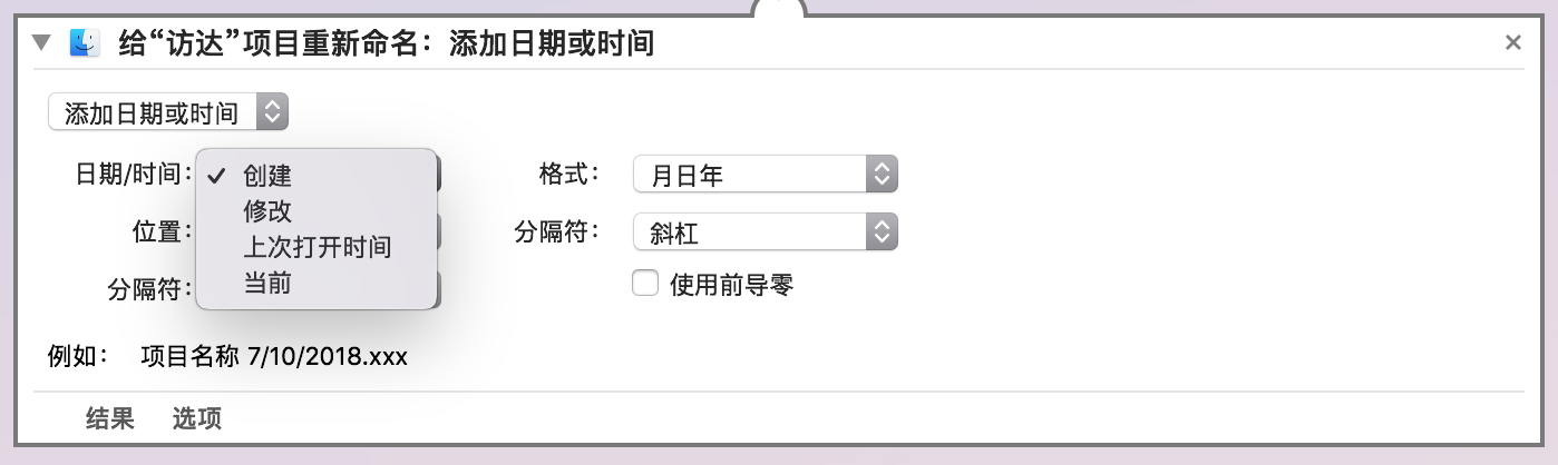 另一方面,Automator 允许我们根据按照文件创建、修改或者当前的日期和时间来重命名。