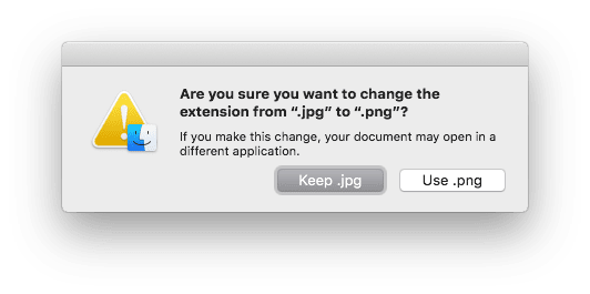用 Automator 来修复或转换拓展名就很干脆了,全程一个警告也没有: