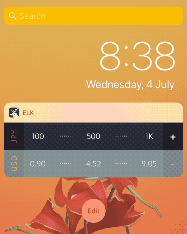 @文刀漢三:Elk 1.3 加入了在通知中心换算汇率的功能,简单的两行小部件,可以换算多个区间的汇率: