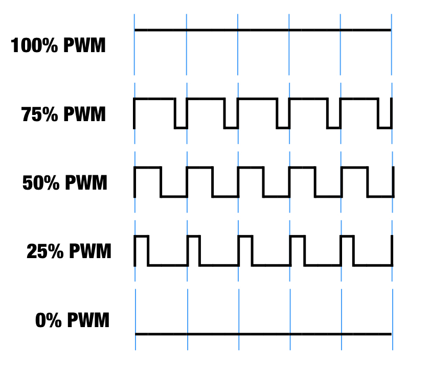 PWM 的一个重要参数是基频,也就是一秒钟有多少个供电和停止供电的周期。一般认为,人眼能够察觉到低于 50 Hz 的频率,也有些人对此更敏感,能够察觉到 100 Hz 的频闪。100 Hz 以上一般人眼无法察觉,但 100 Hz 到 500 Hz 的频率范围仍可能造成头晕、视疲劳等症状。举个例子,视频和游戏中的帧数和 PWM 的周期是类似的概念,现在视频和游戏的常见标准是一秒三十帧图像,也就是一秒钟变化三十次,但是将帧数提高到每秒六十,大部分人仍能感受到画面更「顺滑」。8