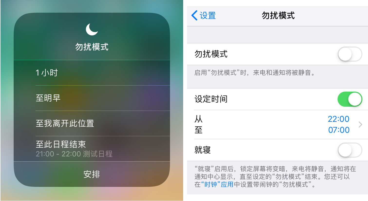 在 iOS 12 中,苹果也进一步提高了勿扰模式设定时间的灵活度,还添加了两种特殊勿扰模式。