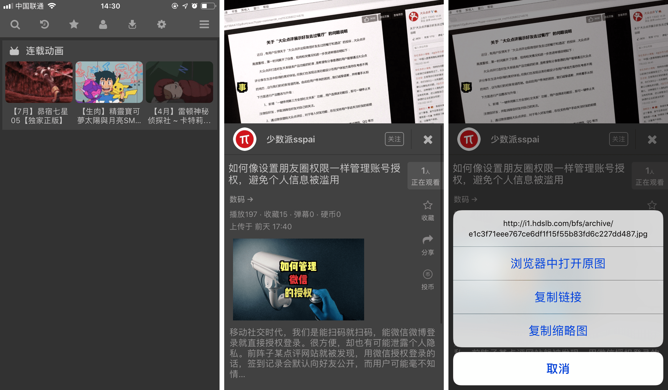 @Minja:和很多使用 Tweetbot、Moke 等第三方客户端的人一样,我最初购买弹幕 TV 就是因为看中了它的简约,相比官方客户端,它可以自定义应用主界面,我能够把信息流收拾得干干净净。另外,手势播放、保存视频封面图等一些细心的功能也让我感受到开发者的用心。
