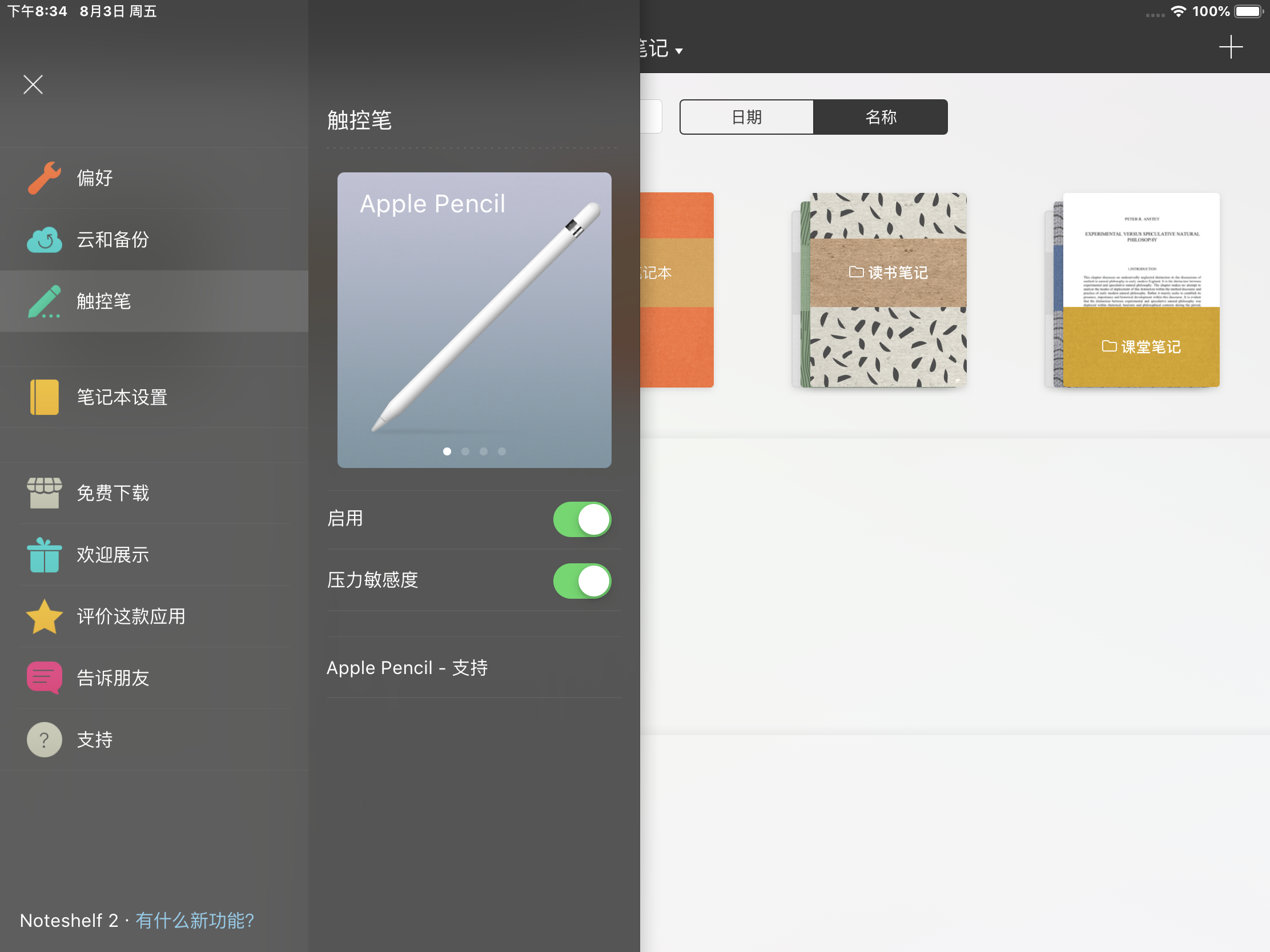 NoteShelf 的设计感一直都比 GoodNotes 和 Notability 更好,不管是开头的功能引导、笔记本陈列、系统设置……所有元素的设计都极为讲究: