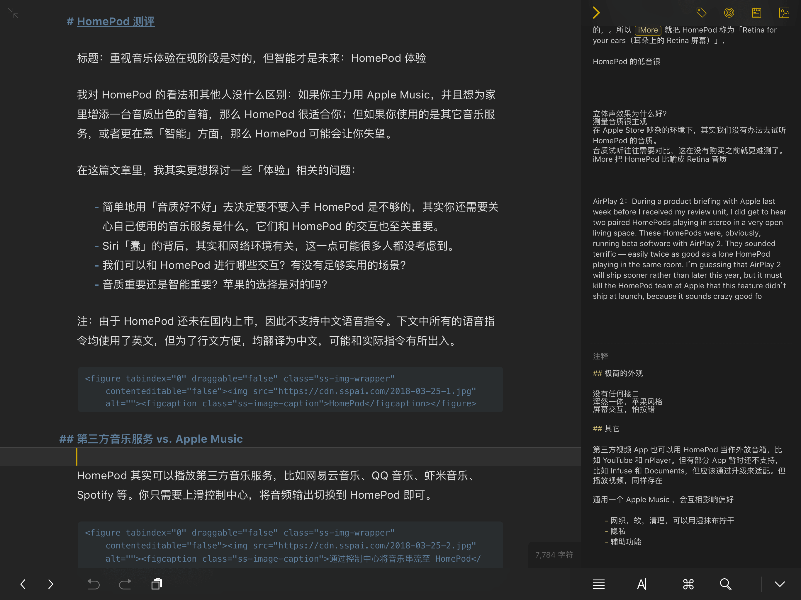 二是可以一边参考素材,一边写作。如果全都放在正文里,那么我可能就得来回滚动页面。另外有时候我们需要描述一个应用的界面,也可以将截图放到附件栏,而不用两个 App 之间切来切去。