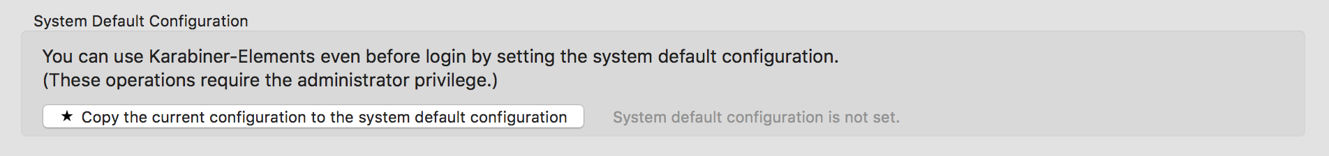 点击「Copy the current configuration to the system default configuration」后,Karabiner-Elements 将作用在该电脑所有用户上。