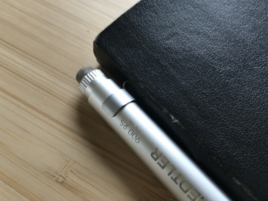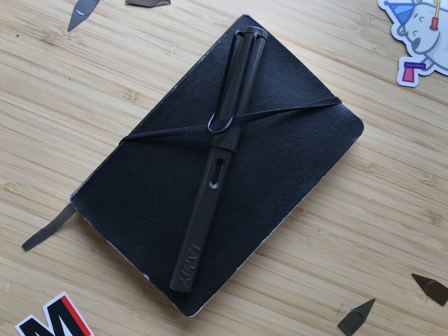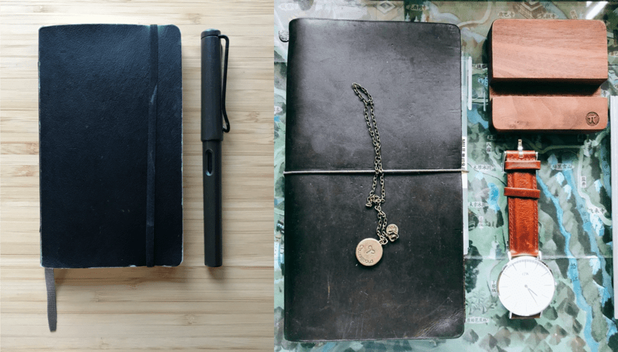 便携是为了能够随时随地取出来就用。能塞进裤子口袋是最理想的,小号的本子不仅轻巧便携,写起来也很容易产生成就感,随手记个两三百字就是密密麻麻一整页。六寸手机大小的口袋本就很合适拿来做手账,国外随身装备论坛 EDC 评出来的 手账 Top 5 清一色都是迷你款。 笔:黑笔加红笔的组合