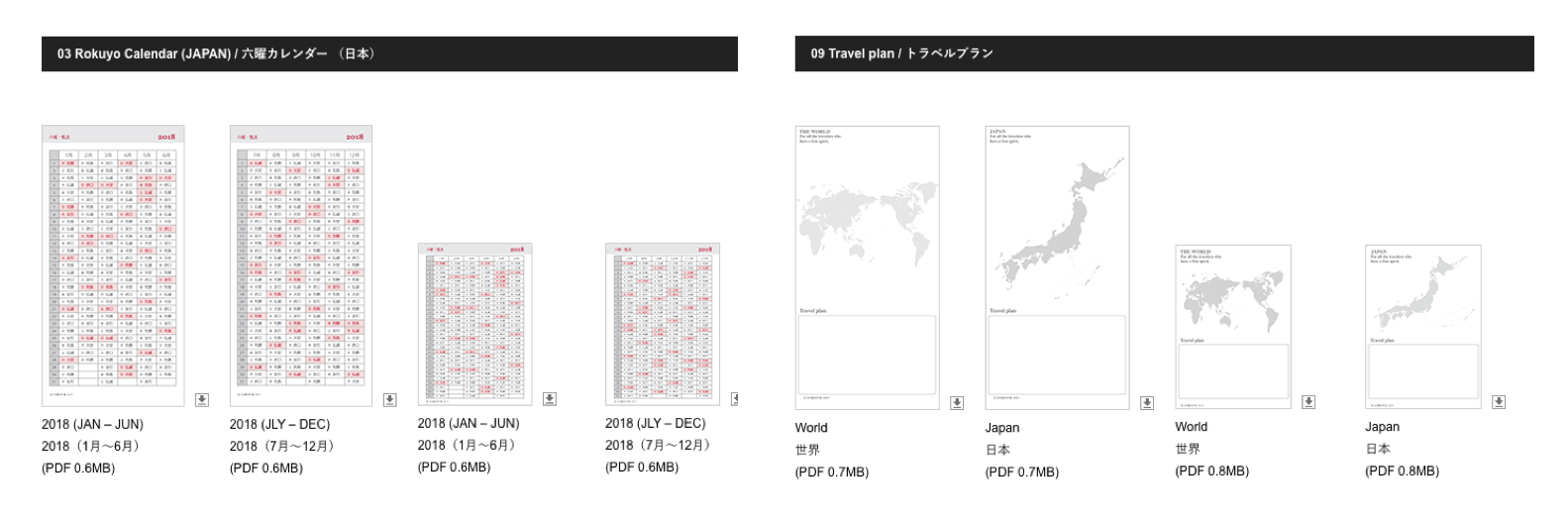 最后介绍个「一键生成日历」的工具。现在的手账本,不少已经不自带日历页,那一年的日历、三百多个小格子,还要一个一个手工画过来不成?不用这么麻烦,有一种日历贴纸,可以让任何手账本拥有年历、月历或周历模版。
