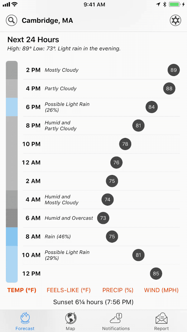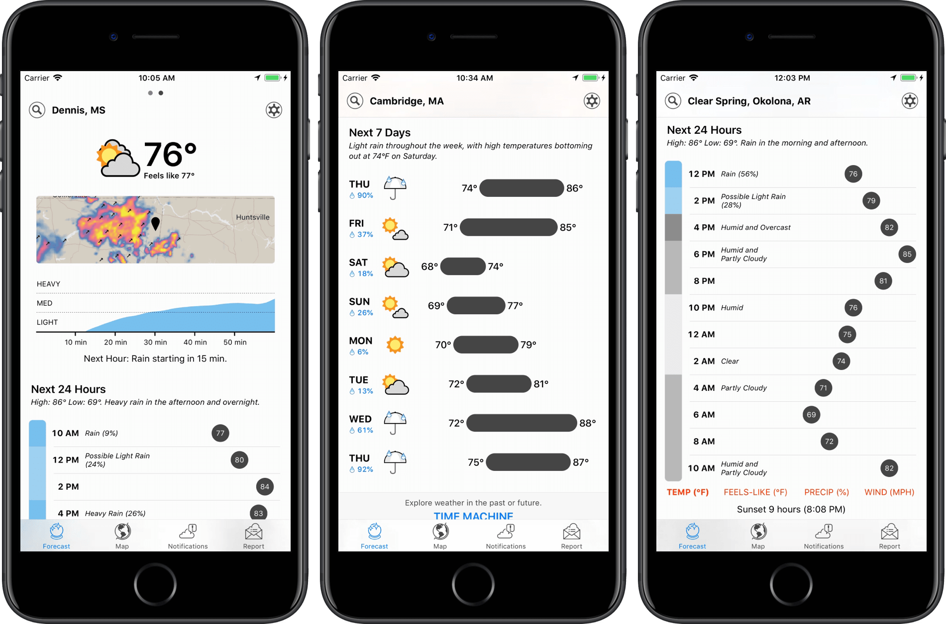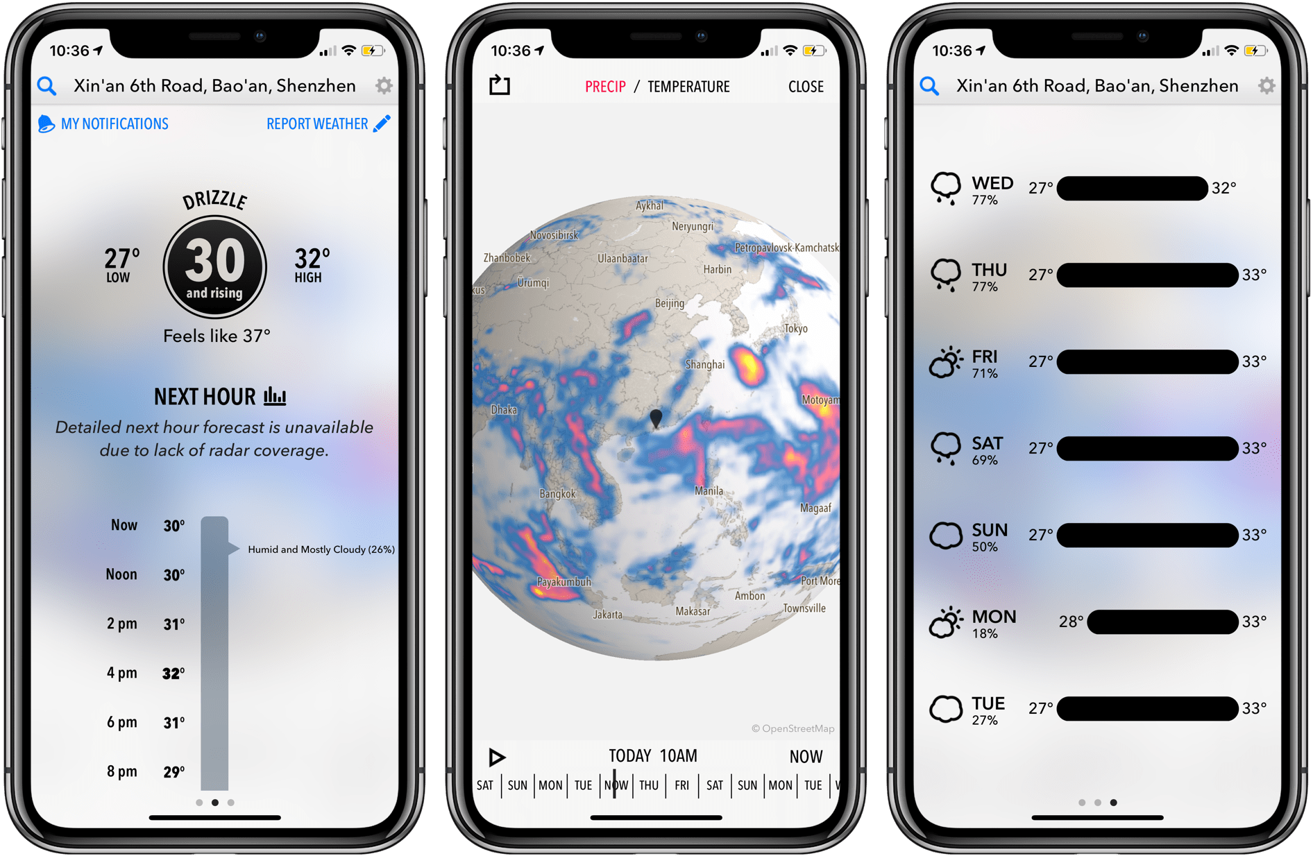 Dark Sky 是不少天气类 App 的 API 提供方,同时在 App Store 也有一款可以实时检测、模拟各地气温、云层状态的全功能天气应用。