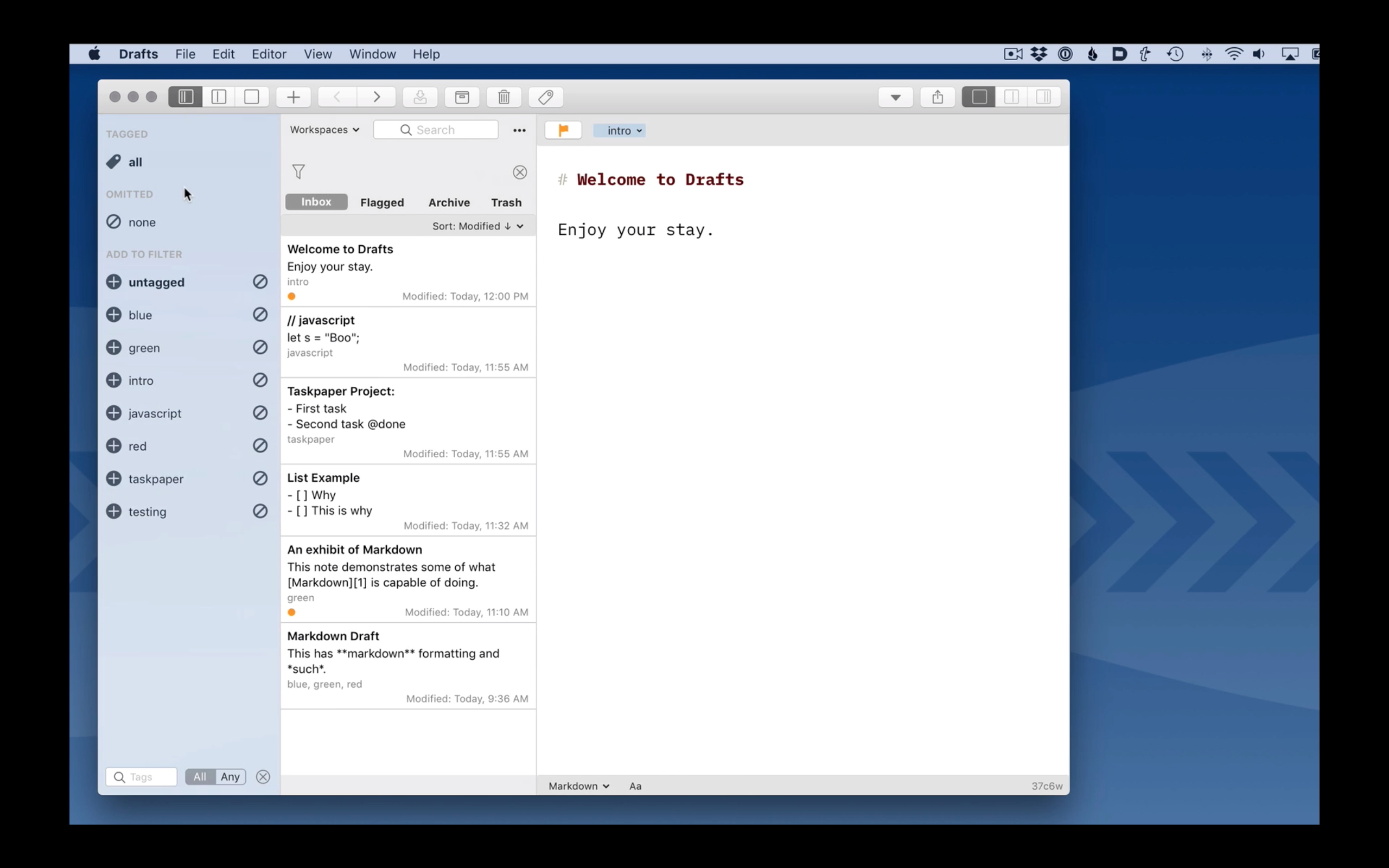所以我对 Drafts for Mac 并没有过高的期待。希望在 Mac 上用上 Drafts,主要是因为 iOS 上对 Drafts 依赖程度太高,Mac 上没有一个可以直接处理 iOS 上 Drafts 内容的工具。对于我来说,只要 Drafts for Mac 能把同步做好,和 iOS 上的 Drafts 无缝衔接,我其实不求它有什么新的特别亮眼的功能。